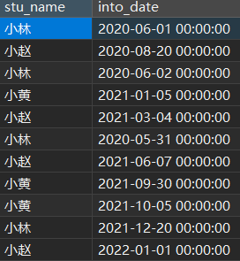 ( SELECT DISTINCT DATE ( into_date ) AS 日期, stu_name