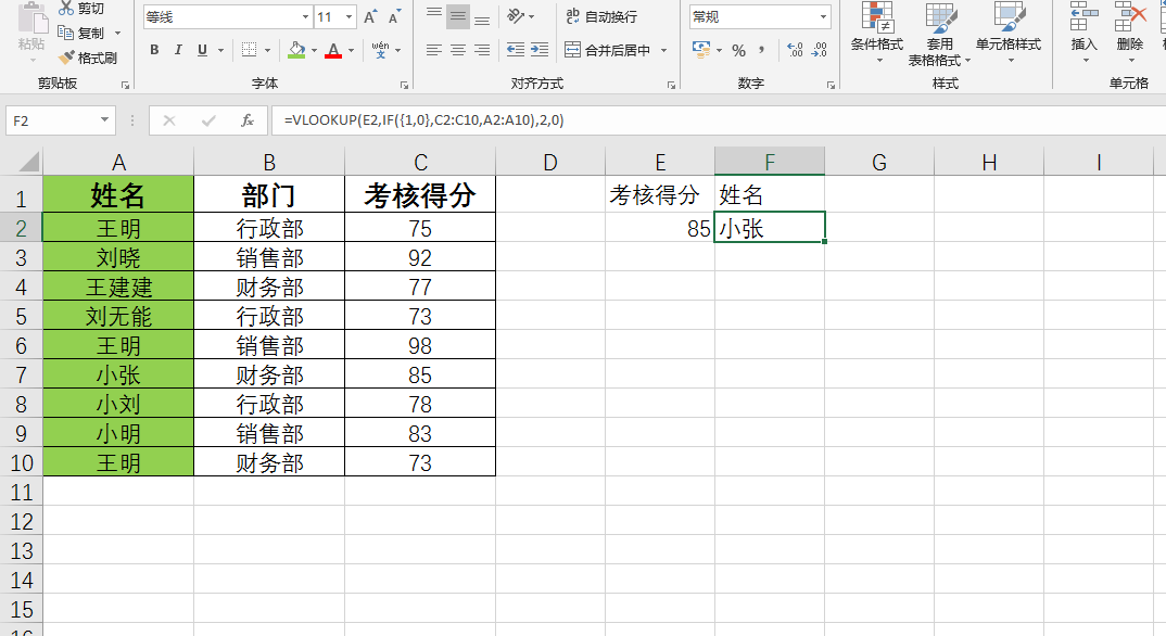 - 第二参数:IF({1,0},C2:C10,A2:A10),构建二维表格