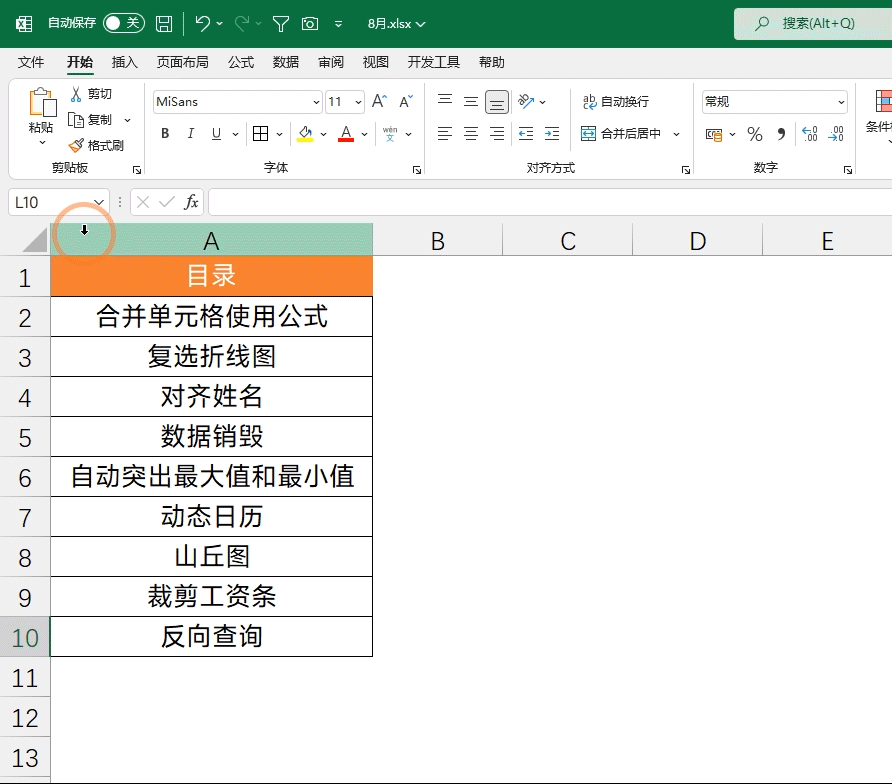 首先为表格设置一个表头,并且设置一个单元格样式,随后选中目录将单元格样式设置为【常规】,然后再为它设置一个自己喜欢的字体