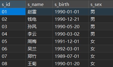 比如存在数据表student如下图: