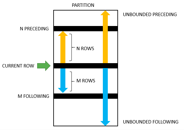 frame_unit有两种,分别是ROWS和RANGE,由ROWS定义的frame是由开始和结束位置的行确定的,由RANGE定义的frame由在某个值区间的行确定。