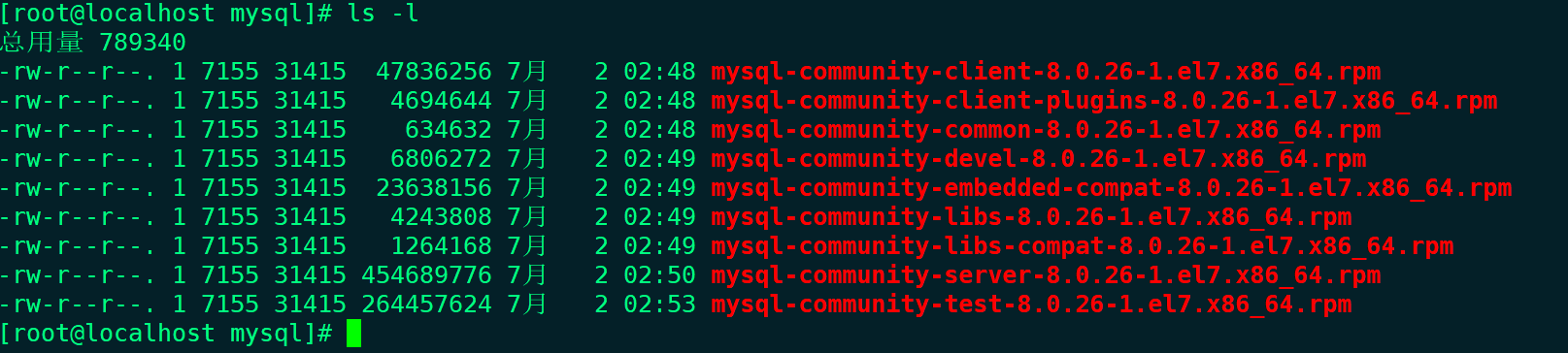 tar -xvf mysql-8.0.26-1.el7.x86_64.rpm-bundle.tar -C /usr/local/mysql/