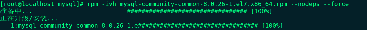 rpm -ivh mysql-community-common-8.0.26-1.el7.x86_64.rpm --nodeps --force
