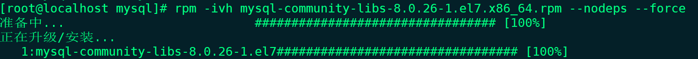 rpm -ivh mysql-community-libs-8.0.26-1.el7.x86_64.rpm --nodeps --force